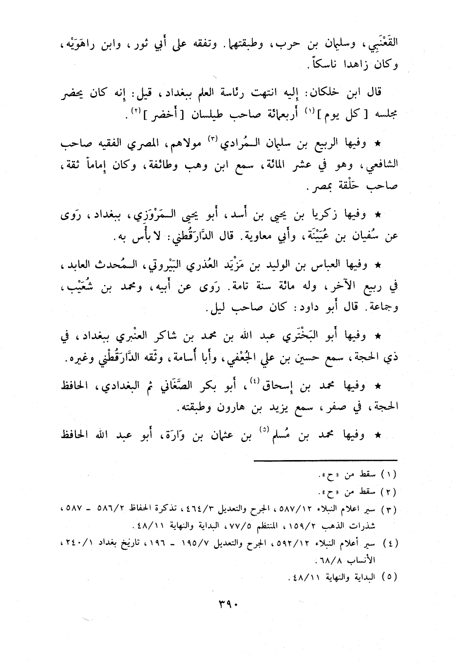 وفيها زكريا بن يحيى بن أسد، أبو يحيى المروزي، ببغداد، روى عن سفيان بن عيينة، وأبي معاوية. قال الدراقطني: لا بأس به.