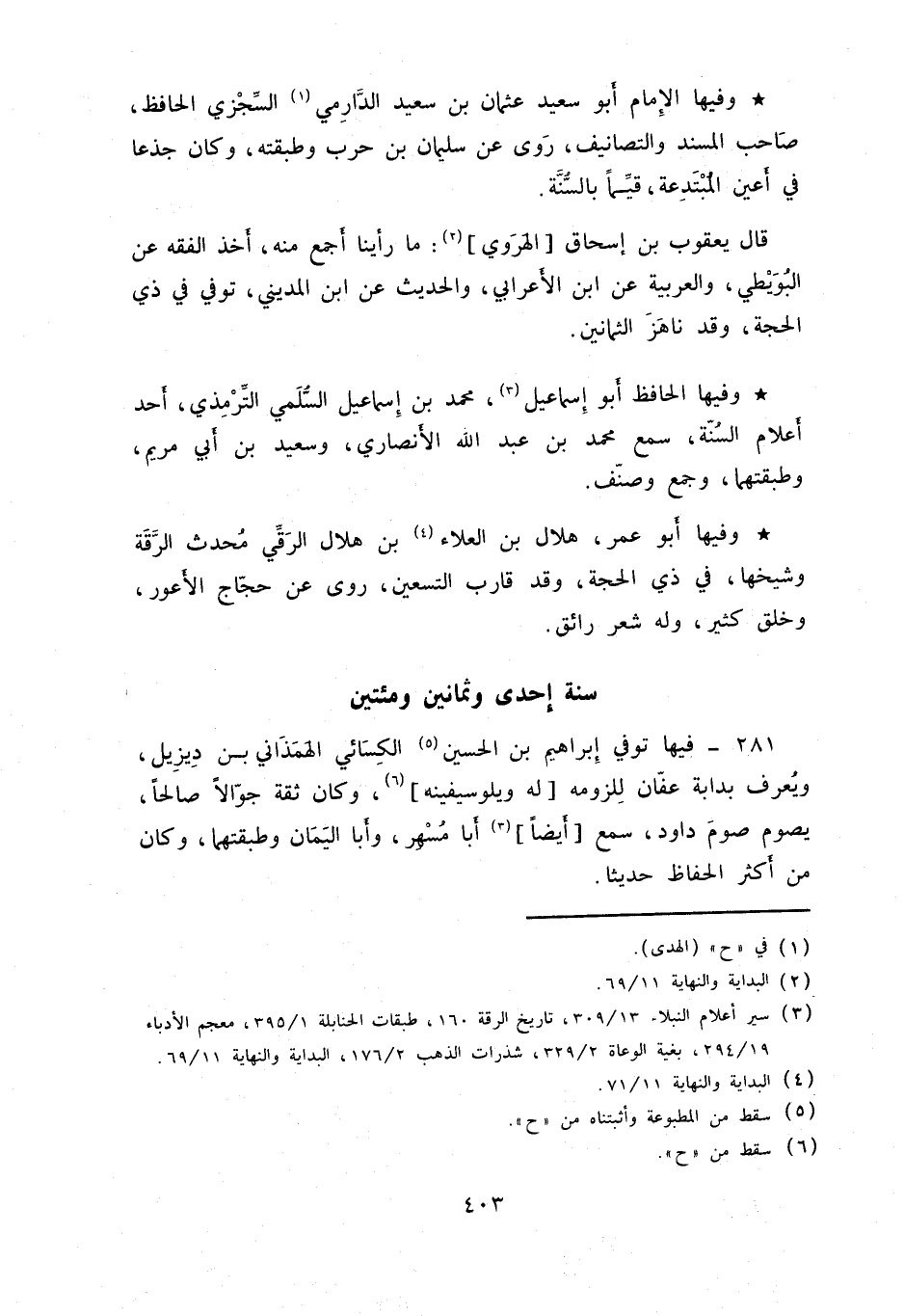 وفيها الإمام أبو سعيد عثمان بن سعيد الدرامي السجزي الحافظ. صاحب المسند والتصانيف. روى عن سليمان بن حرب وطبقته. وكان جذعا في أعين المبتدعة. قيماً بالسنة.