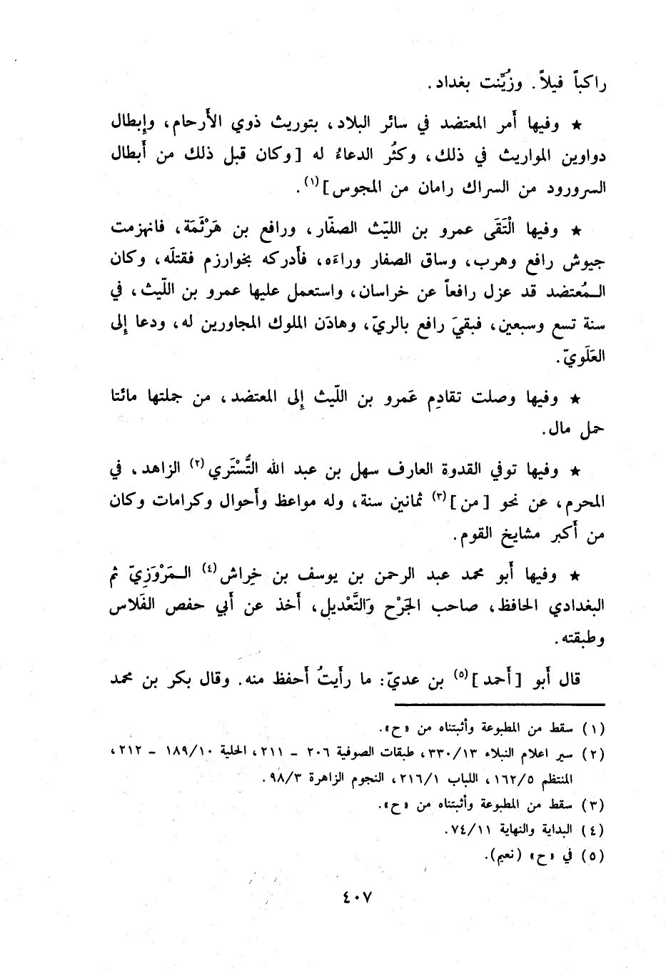 راكباً فيلاً. وزينت بغداد. وفيها أمر المعتضد في سائر البلاد، بتوريث ذوي الأرحام، وإبطال دواوين المواريث في ذلك، وكثر الدعاء له وكان قبل ذلك من أبطال السرورود من السراك رامان من المجوس.