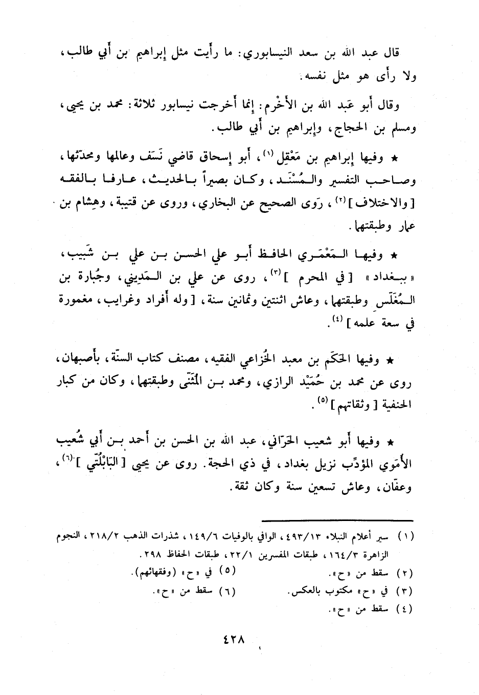 وفيها إبراهيم بن معقل، أبو إسحاق قاضي نسف وعالمها ومحدثها، وصاحب التفسير والمسند. وكان بصيراً بالحديث، عارفا بالفقه والاختلاف، روى الصحيح بن البخاري. وروى عن قتيبة، وهشام بن عمار وطبقتهما.