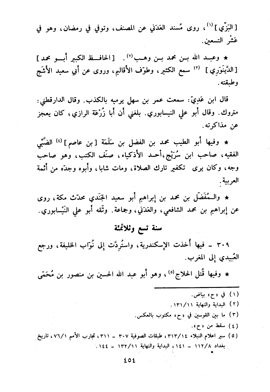 وفيها قتل الحلاج وهو أبو عبد الله الحسين بن منصور بن محمى
