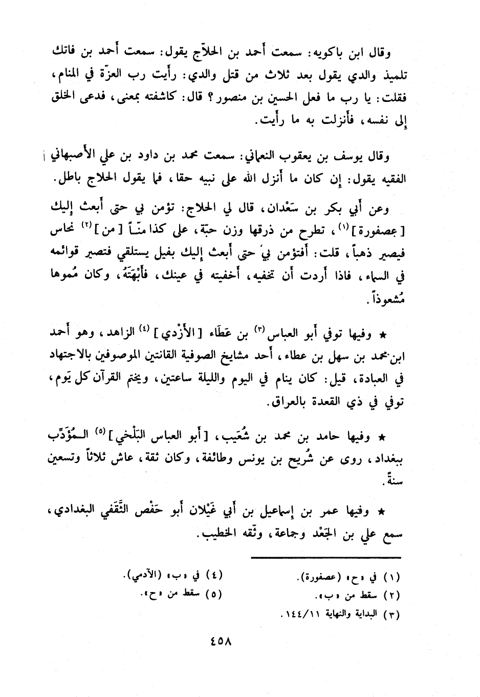 وفيها توفي أبو العباس بن عطاء الأزدي الزاهد، وهو أحمد ابن محمد بن سهل بن عطاء، أحد مشايخ الصوفية القانتين الموصوفين بالاجتهاد في العبادة، قيل: كان ينام في اليوم والليلة ساعتين، ويختم القرآن كل يوم، توفي في ذي القعدة بالعراق.
