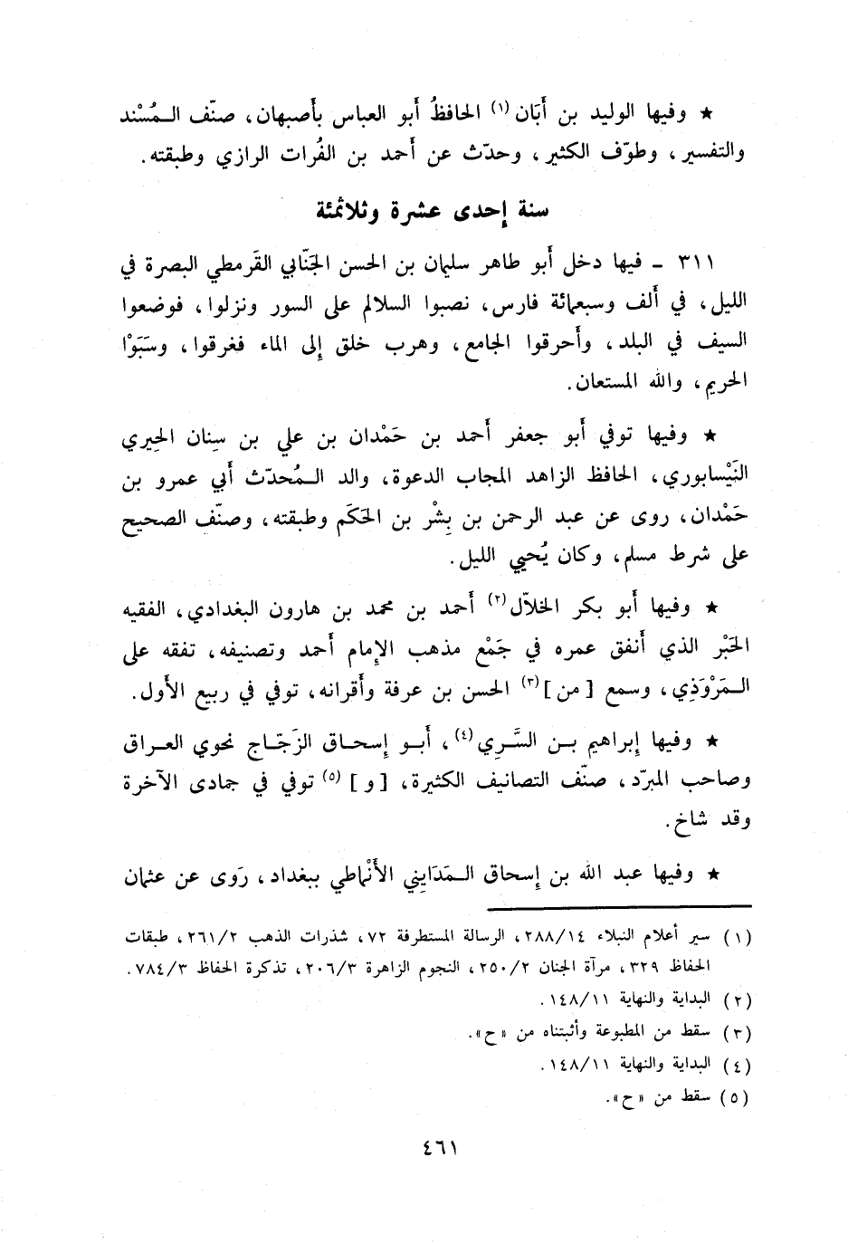 وفيها إبراهيم بن السري، أبو إسحاق الزجاج نحوي العراق وصاحب المبرد. صنف التصانيف الكثيرة، وتوفي في جمادى الآخرة وقد شاخ.