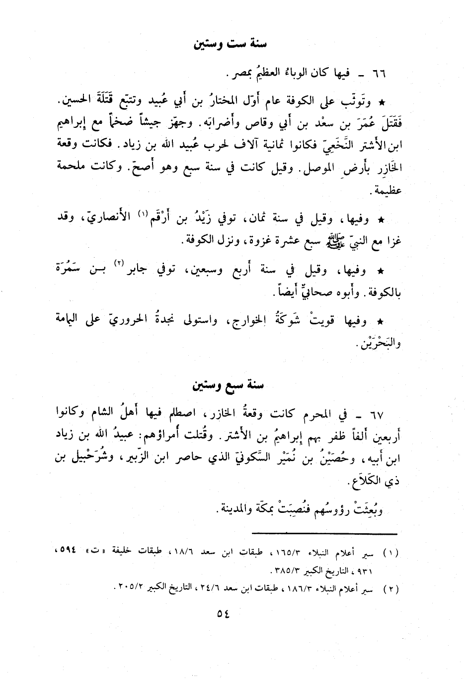 وفيها، وقيل في سنة ثمان، توفي زيد بن أرقم الأنصاري، وقد غزا مع النبي صلى الله عليه وسلم سبع عشرة غزوة، ونزل الكوفة.