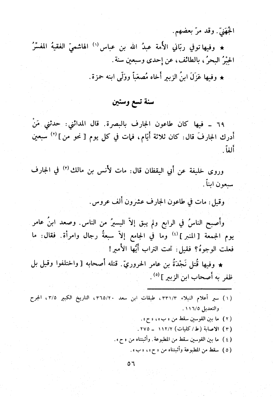وأصبح الناس في الرابع ولم يبق إلا اليسير من الناس. وصعد ابن عامر يوم الجمعة المنبر وما في الجامع إلا سبعة رجال وامرأة. فقال: ما فعلت الوجوه؟ فقيل: تحت التراب أيها الأمير وفيها قتل نجدة بن عامر الحروري. قتله أصحابه واختلفوا وقيل بل ظفر به أصحاب ابن الزبير.