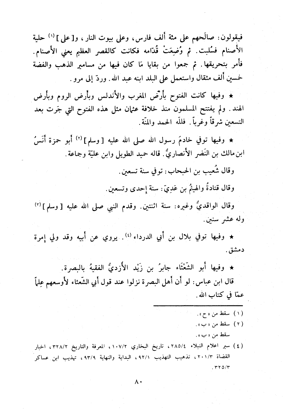 وفيها كانت الفتوح بأرض المغرب والأندلس وبأرض الروم وبأرض الهند. ولم يفتتح المسلمون منذ خلافة عثمان مثل هذه الفتوح التي جرت بعد التسعين شرقاً وغرباً. فلله الحمد والمنة.