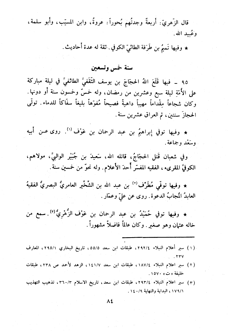 وفي شعبان قتل الحجاج، قاتله الله، سعيد بن جبير الوالبي، مولاهم، الكوفي المقرىء، الفقيه المفسر أحد الأعلام. وله نحو من خمسين سنة.