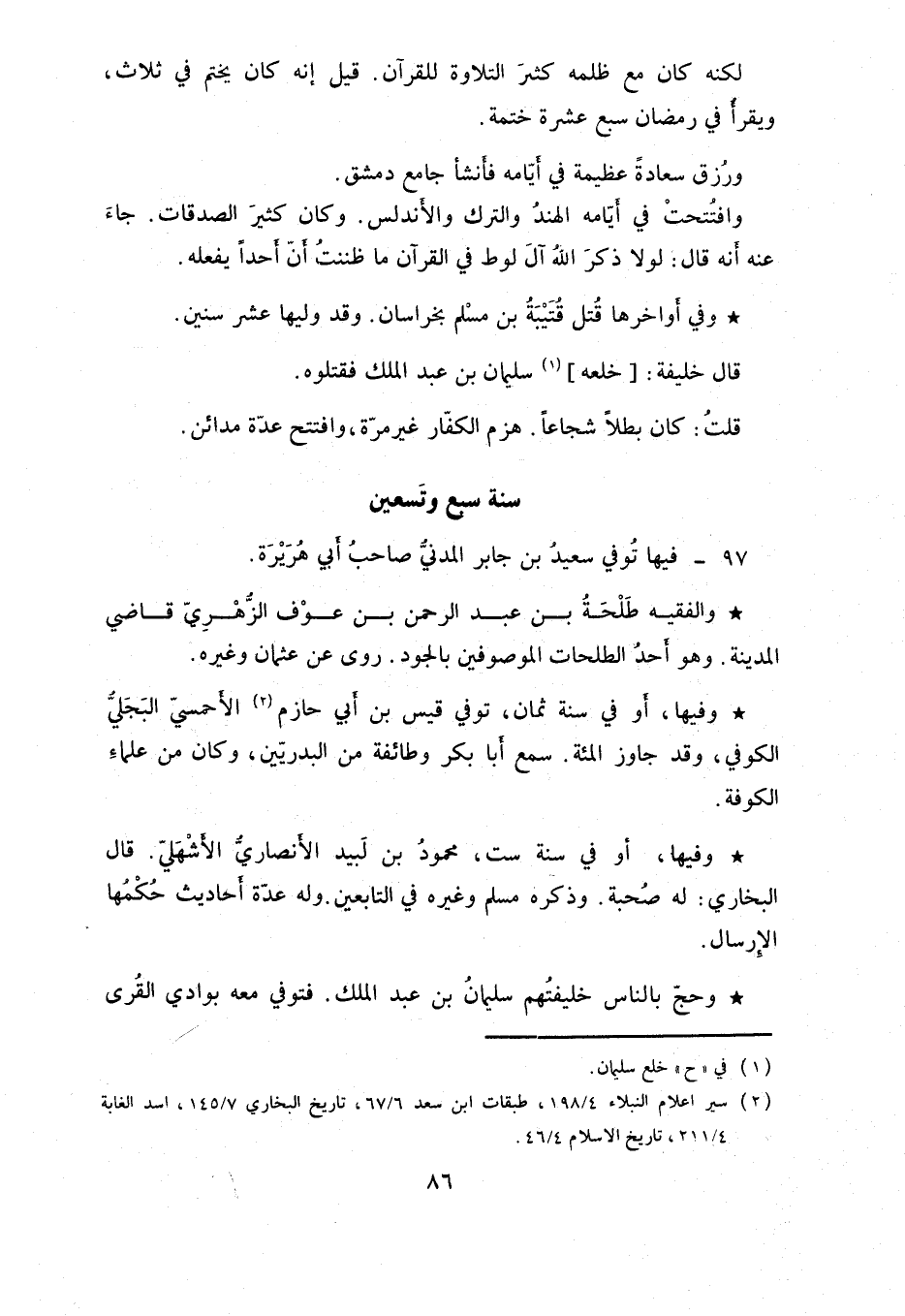 وفي أواخرها قتل قتيبة بن مسلم بخراسان. وقد وليها عشر سنين.