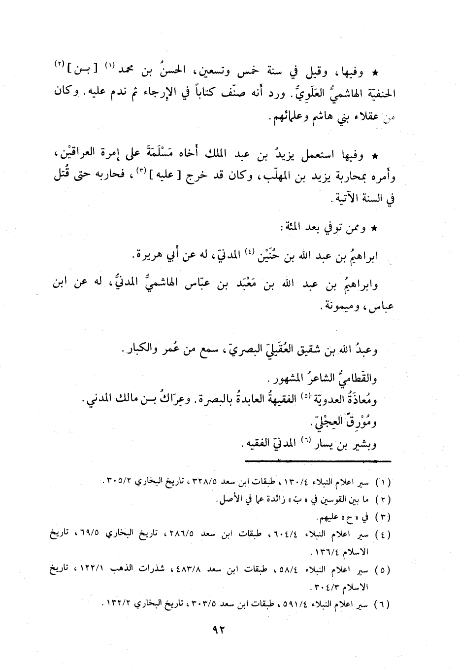 وفيها وقيل في سنة خمس وتسعين، الحسنُ بن محمد بن الحنفية الهاشمي العلوي ورد أنه صنف كتاباً في الإرجاء ثم ندم عليه. وكان من عقلاء ِبني هاشم وعلمائهم.