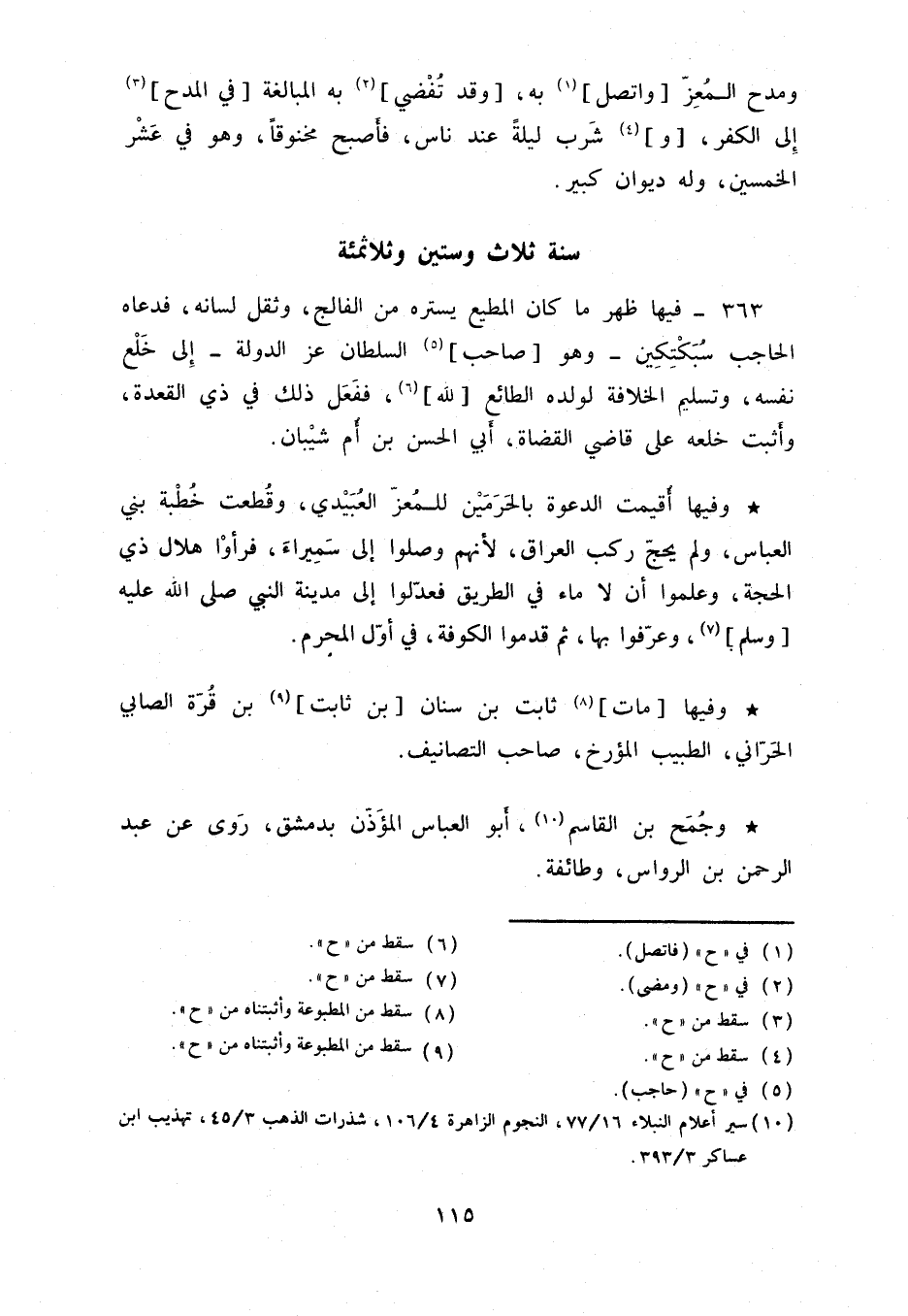 وفيها مات ثابت بن سنان بن ثابت بن قرّة الصابي الحراني، الطبيب المؤرخ، صاحب التصانيف.