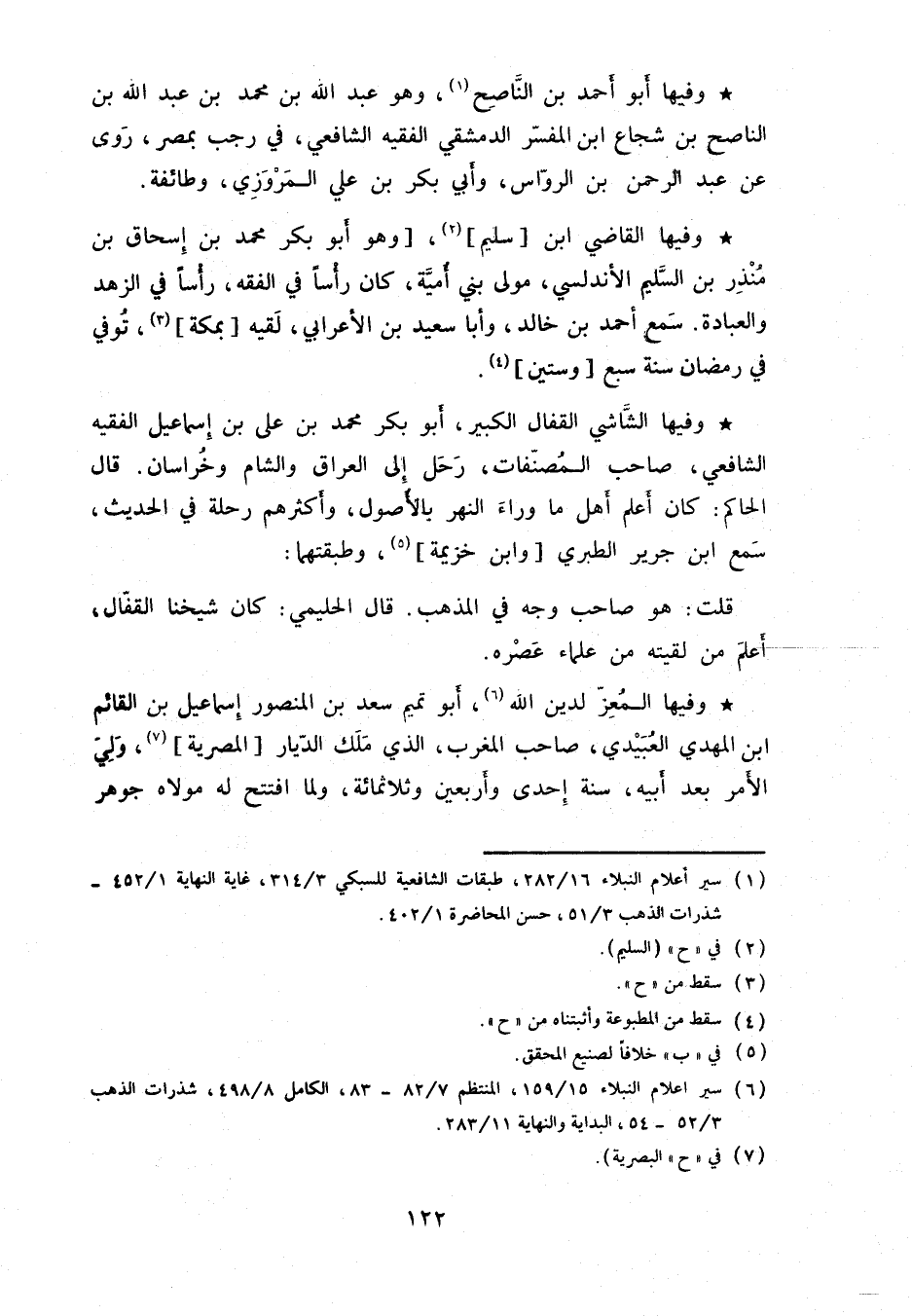 وفيها الشَّاشي القفال الكبير، أبو بكر محمد بن علي بن إسماعيل الفقيه الشافعي، صاحب المصنّفات، رحل إلى العراق والشام وخراسان. قال الحاكم: كان أعلم أهل ما وراء النهر بالأصول، وأكثرهم رحلة في الحديث، سمع ابن جرير الطبري وابن خزيمة، وطبقتهما: قلت: هو صاحب وجه في المذهب. قال الحليمي: كان شيخنا القفّال، أعلم من لقيته من علماء عصره.