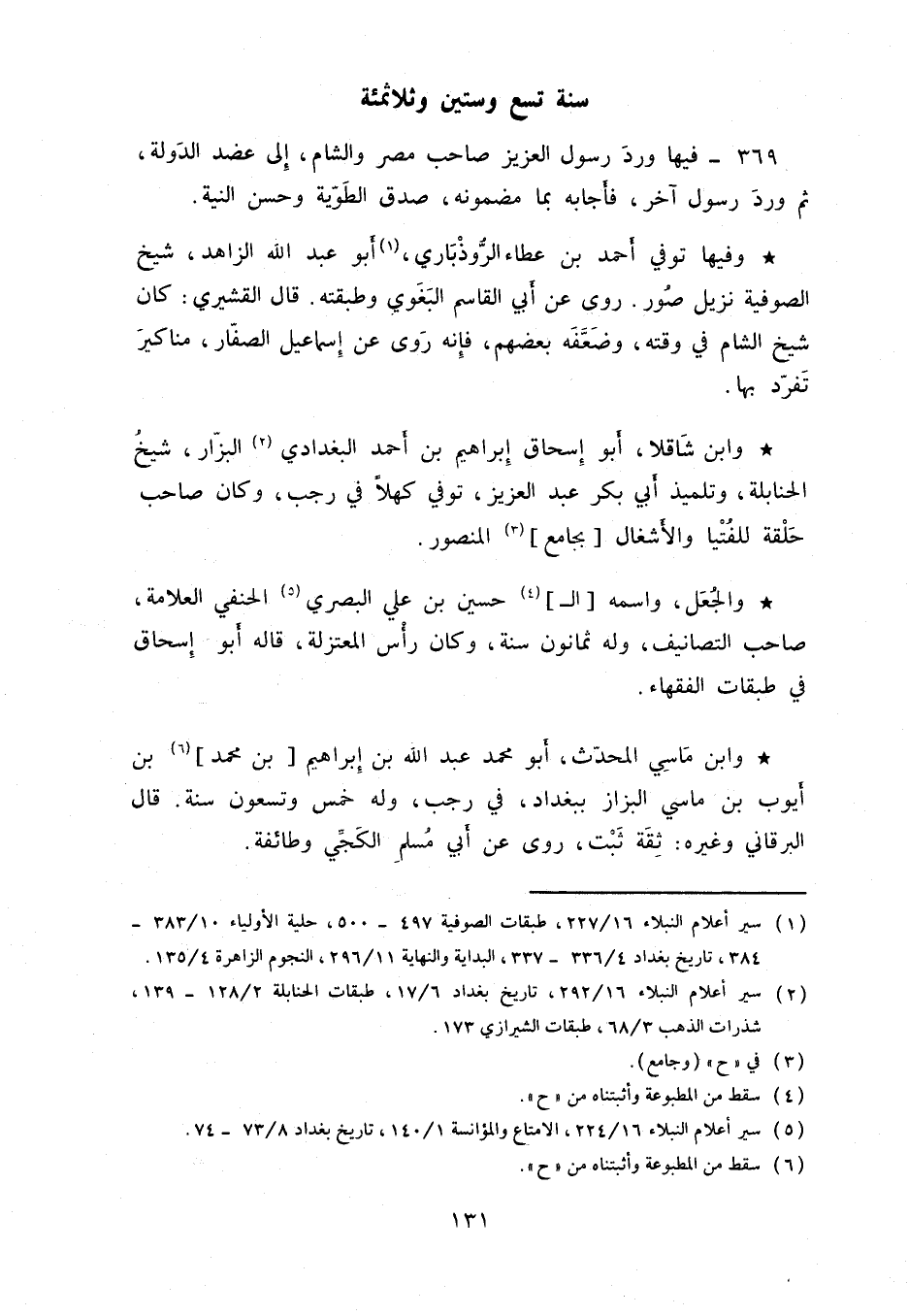 وفيها توفي أحمد بن عطاء الرُّوذباري، أبو عبد الله الزاهد، شيخ الصوفية نزيل صور. روى عن أبي القاسم البغوي وطبقته. قال القشيري: كان شيخ الشام في وقته، وضعَّفه بعضهم، فإنه روى عن إسماعيل الصفّار، مناكير تفرّد بها.