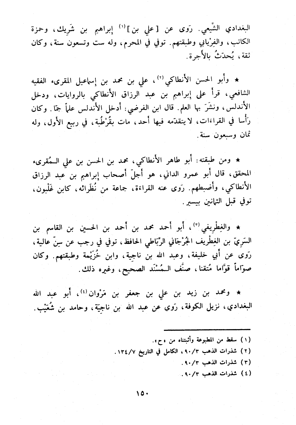 وأبو الحسن الأنطاكي، علي بن محمد بن إسماعيل المقرئ الفقيه الشافعي، قرأ على إبراهيم بن عبد الرزاق الأنطاكي بالروايات، ودخل الأندلس، ونشر بها العلم. قال ابن الفرضي: أدخل الأندلس علماً جمّاً. وكان رأساً في القراءات، لا يتقدّمه فيها أحد، مات بقرطبة، في ربيع الأول، وله ثمان وسبعون سنة.