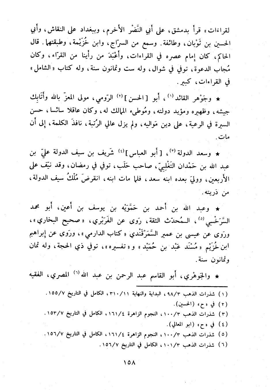 القراءات " قرأ بدمشق، على أبي النَّضر الأخرم، وببغداد على النقاش، وأبي الحسين بن ثوبان، وطائفة. وسمع من السرّاج، وابن خزيمة، وطبقتهما. قال الحاكم، كان إمام عصره في القراءات، وأعبد ن رأينا من القرّاء، وكان مجاب الدعوة، توفي في شوال، وله ست وثمانون سنة، وله كتاب " الشامل " في القراءات، كبير.