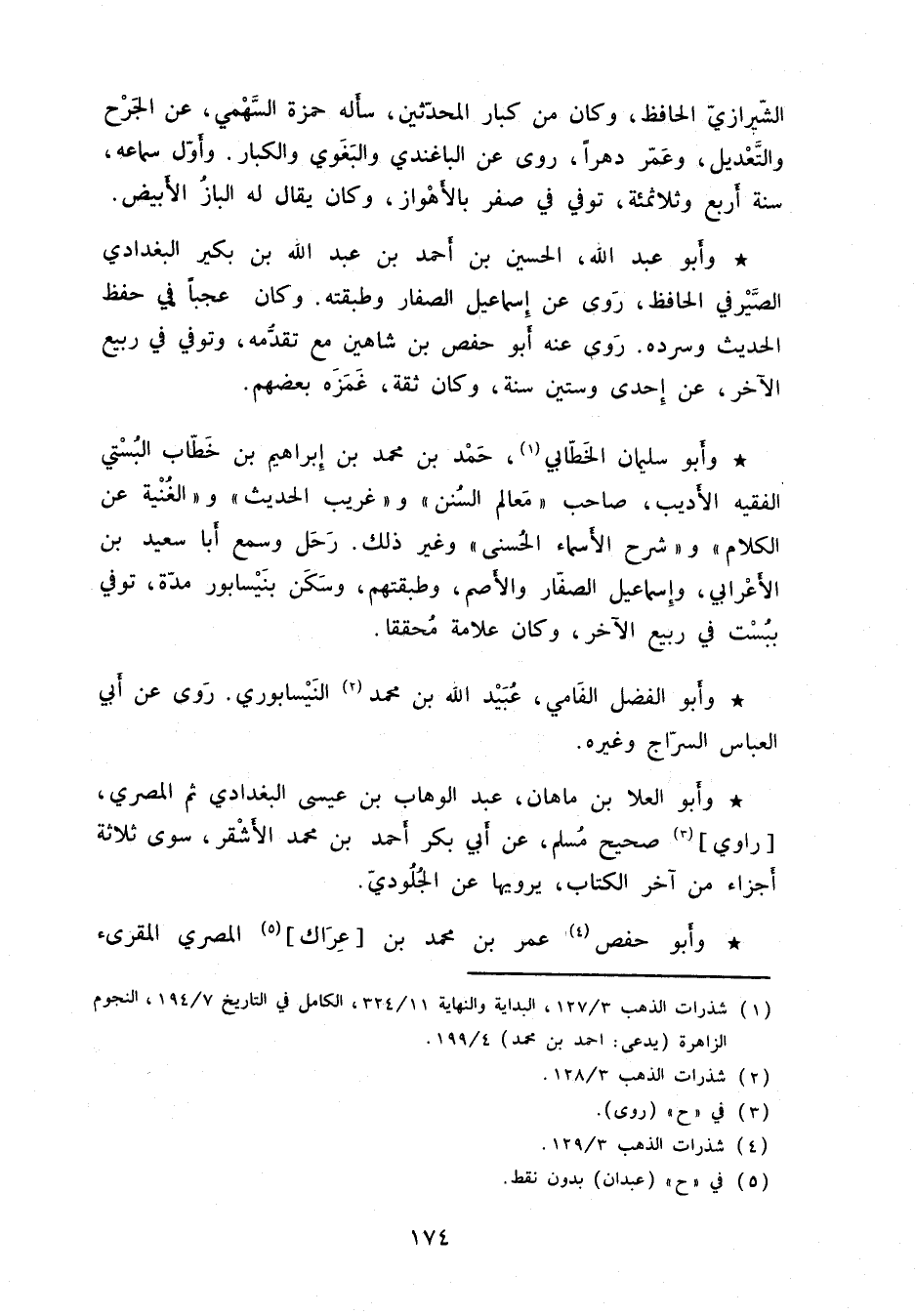 وأبو سليمان الخطّابي، حمد بن محمد بن إبراهيم بن خطّاب البستي الفقيه الأديب، صاحب " معالم السنن " و " غريب الحديث " و " الغنية عن الكلام " و " شرح الأسماء الحسنى " وغير ذلك. رحل وسمع أبا سعيد بن الأعرابي، وإسماعيل الصفّار والأصم، وطبقتهم، وسكن بنيسابور مدّة، توفي ببست في ربيع الآخر، وكان علامة محققاً.