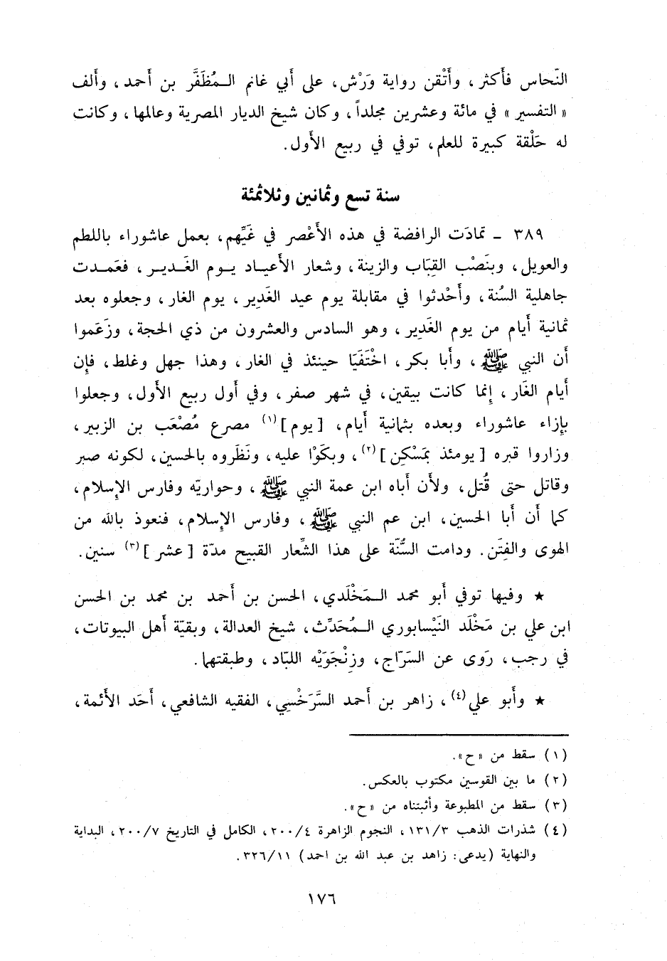 وفيها توفي أبو محمد المخلدي، الحسن بن أحمد بن محمد بن الحسن ابن علي بن مخلد النيسابوري المحدِّث، شيخ العدالة، وبقيّة أهل البيوتات، في رجب، روى عن السرّاج، وزنجويه اللبّاد، وطبقتهما.