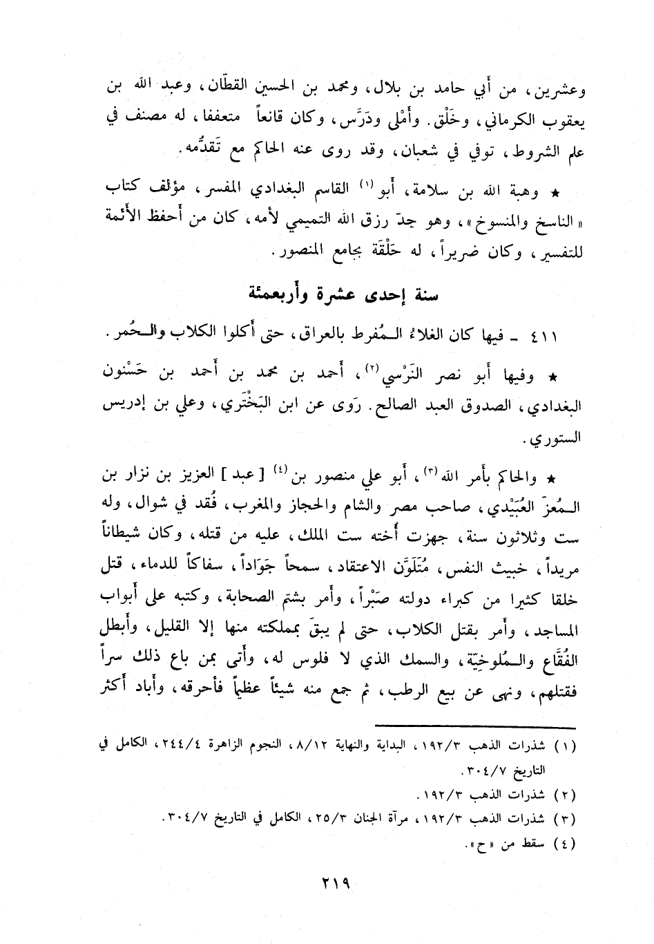 والحاكم بأمر الله، أبو علي منصور بن عبد العزيز بن نزار بن المعزّ العبيدي، صاحب مصر والشام والحجاز والمغرب، فقد في شوال، وله ست وثلاثون سنة، جهزت أخته ست الملك، عليه من قتله، وكان شيطاناً مريداً، خبيث النفس، متلوَّن الاعتقاد، سمحاً جواداً، سفاكاً للدماء، قتل خلقاً كثيراً من كبراء دولته صبراً، وأمر بشتم الصحابة، وكتبه على أبواب المساجد، وأمر بقتل الكلاب، حتى لم يبق بمملكته منها إلا القليل، وأبطل الفقَّاع والملوخيّة، والسمك الذي لا فلوس له، وأتى بمن باع ذلك سرً فقتلهم، ونهى عن بيع الرطب، ثم جمع منه شيئاً عظيماً فأحرقه، وأباد أكثر