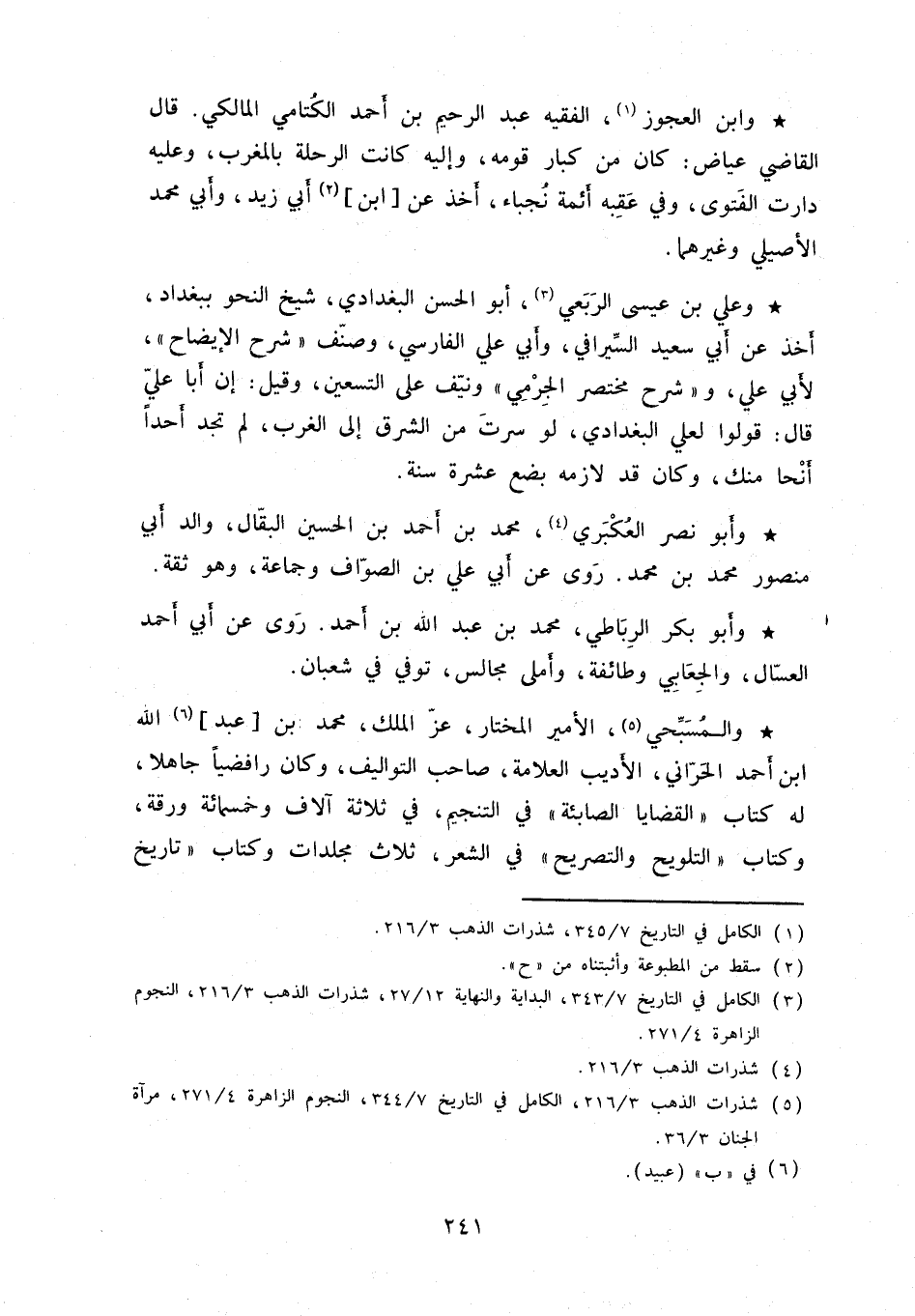 والمسبِّحي، الأمير المختار، عزّ الملك، محمد بن عبد الله ابن أحمد الحرّاني، الأديب العلامة، صاحب التواليف، وكان رافضياً جاهلاً، له كتاب " القضايا الصائبة " في التنجيم، في ثلاثة آلاف وخمسمائة ورقة، وكتاب " التلويح والتصريح " في الشعر، ثلاث مجلدات وكتاب " تاريخ