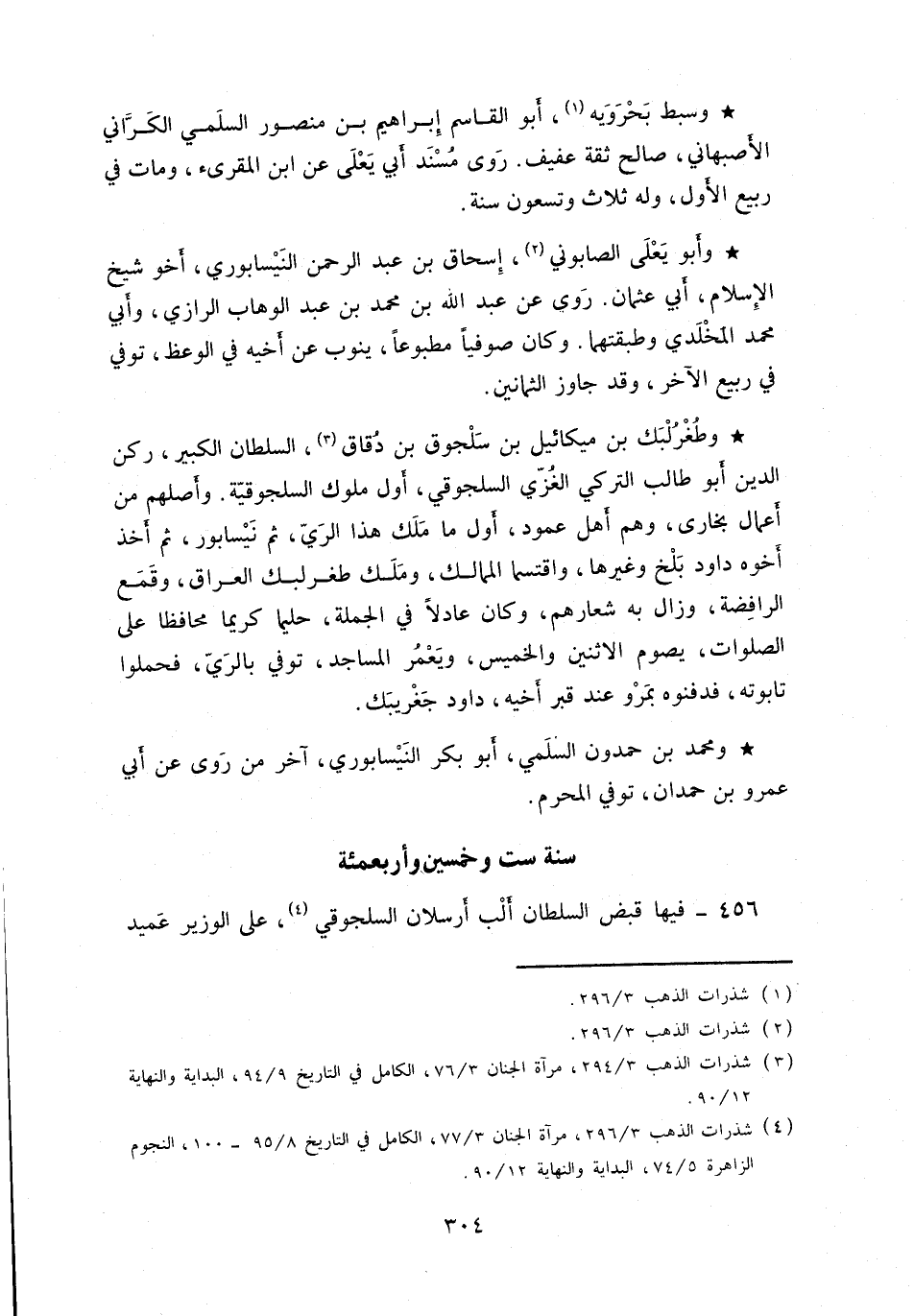 ومحمد بن حمدون السلمي، أبو بكر النيسابوري، آخر من روى عن أبي عمرو بن حمدان، توفي المحرم.