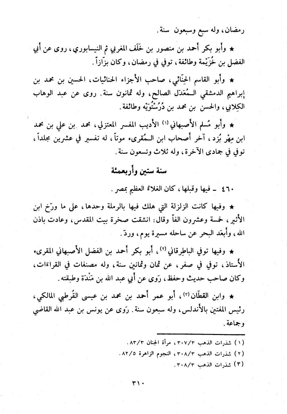 وفيها توفي الباطرقاني، أبو بكر احمد بن الفضل الأصبهاني المقرئ الأستاذ، توفي في صفر، عن ثمان وثمانين سنة، وله مصنفات في القراءات، وكان صاحب حديث وحفظ، روى عن أبي عبد الله بن مندة وطبقته.