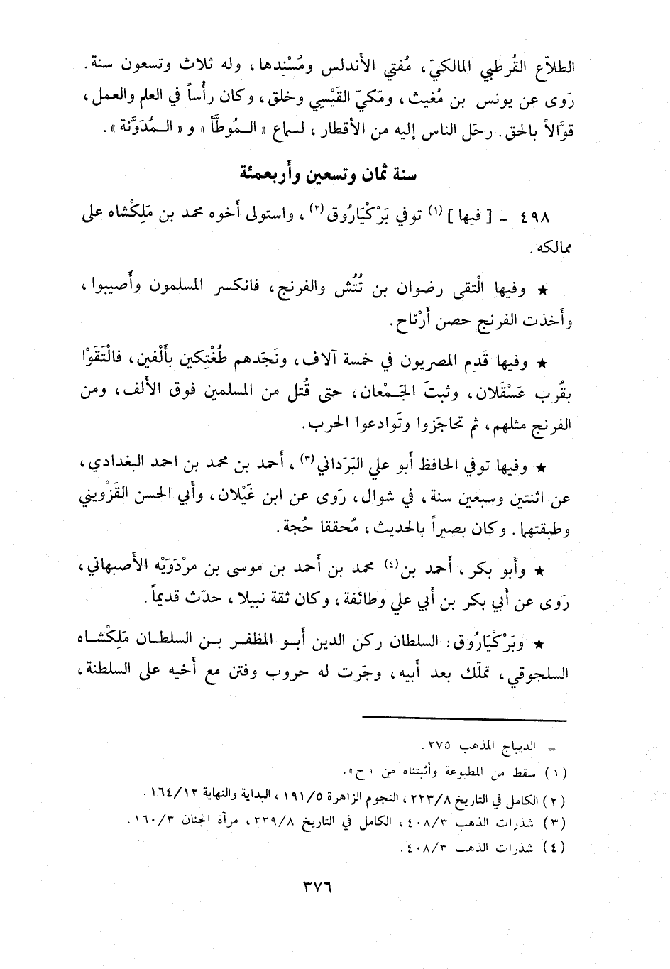 فيها توفي بركياروق، واستولى أخوه محمد بن ملكشاه على ممالكه.