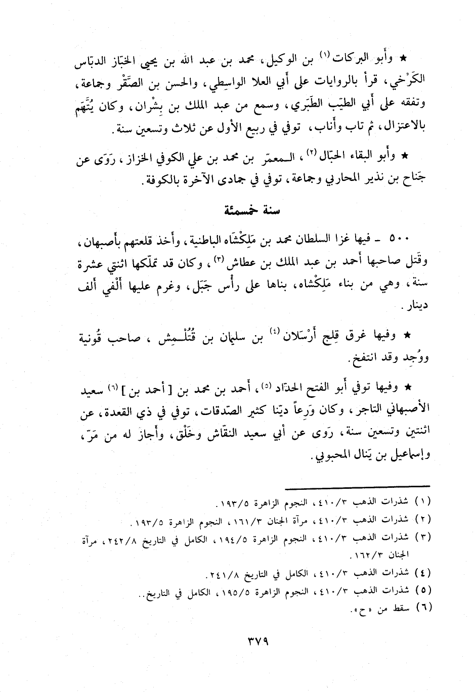 وأبو البركات بن الوكيل، محمد بن عبد الله بن يحيى الخيّاز الدبّاس الكرخي، قرأ بالروايات على أبي العلا الواسطي، والحسن بن الصَّقر وجماعة، وتفقه على أبي الطيّب الطبري، وسمع من عبد الملك بن بشران، وكان يتَّهم بالاعتزال، ثم تاب وأناب، توفي في ربيع الأول عن ثلاث وتسعين سنة.