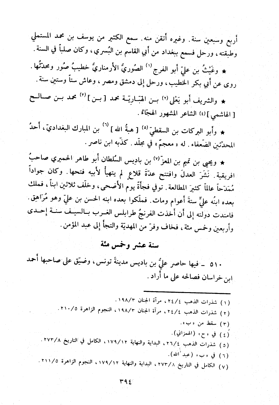 ويحيى بن تميم بن المعزّ بن باديس السلطان أبو طاهر الحميري صاحب إفريقية. نشر العدل وافتتح عدّة قلاعٍ لم يتهيأ لأبيه فتحها. وكان جواداً ممدحاً عالماً كثير المطالعة. توفي فجأةً يوم الأضحى، وخلّف ثلاثين ابناً، فملك بعده ابنه عليٌّ ستة أعوام ومات. فملّكوا بعده ابنه الحسن بن عليّ وهو مراهق.