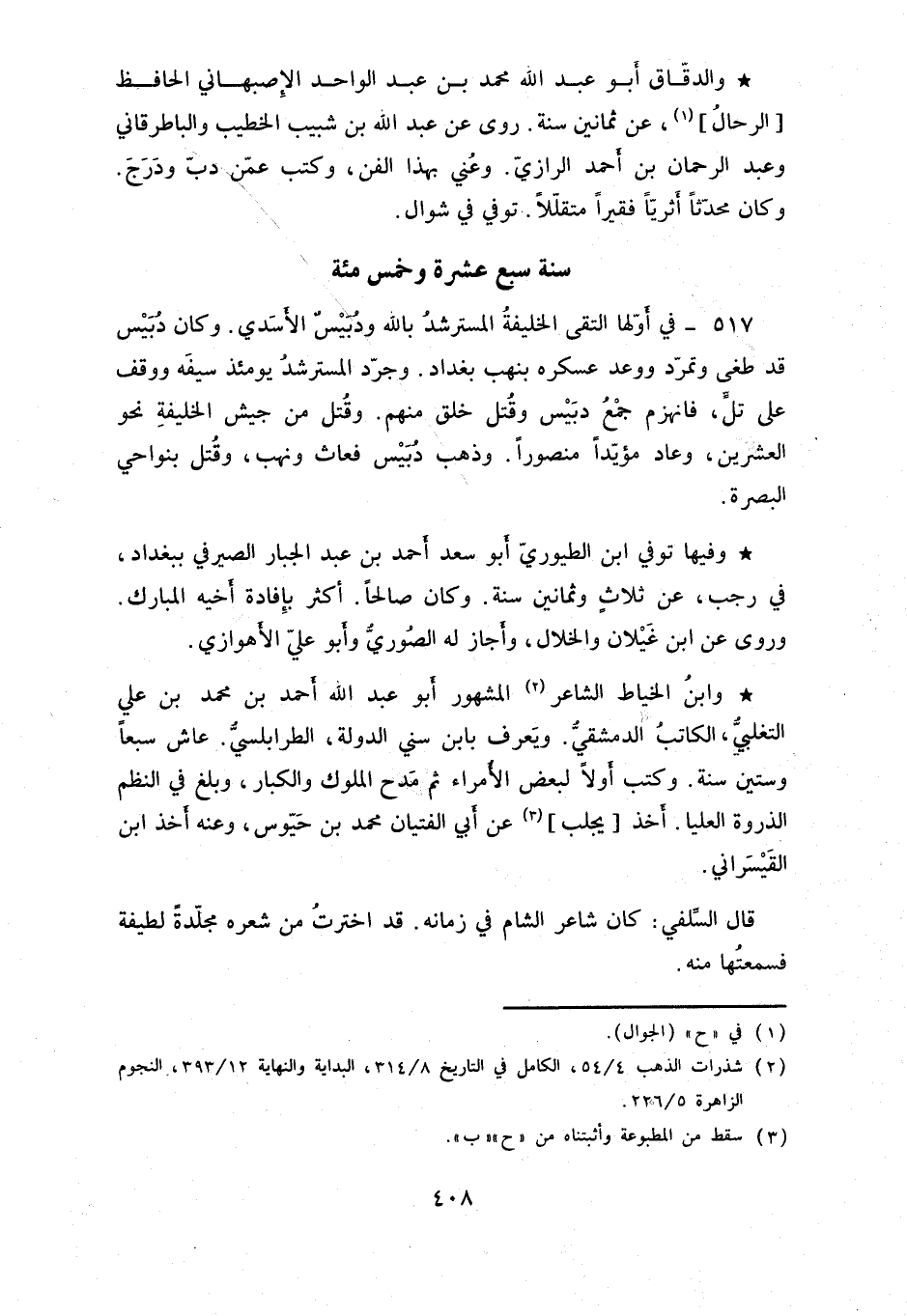 والدقّاق أبو عبد الله محمد بن عبد بن عبد الواحد الإصبهاني الحافظ الرحال عن ثمانين سنة، روى عن عبد الله بن شبيب الخطيب والباطرقاني وعبد الرحمان بن أحمد الرازيّ. وعني بهذا الفن، وكتب عمّن دبّ ودرج وكان محدّثاً أثريّاً فقيراً متقلّلاً. توفي في شوال.