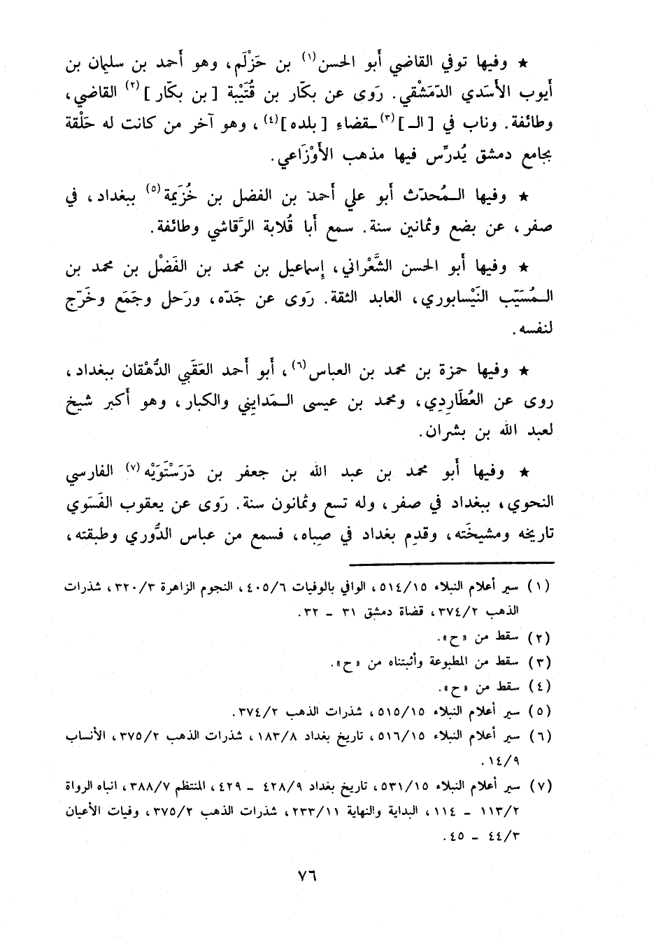 وفيها أبو الحسن الشَّعراني، إسماعيل بن محمد بن الفضل بن محمد بن المسيّب النيسابوري، العابد الثقة. روى عن جدّ، ورحل وجمع وخرّج لنفسه.