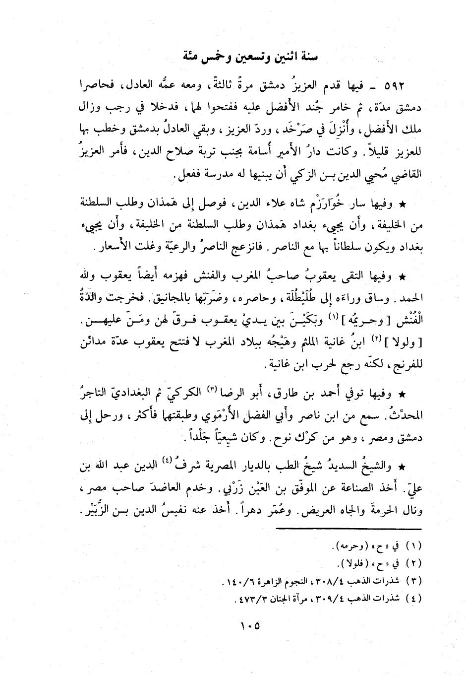 ولولا ابن غانية الملثم وهيجه ببلاد المغرب لافتتح يعقوب عدة مدائن وفيها توفي أحمد بن طارق أبو الرضا الكركي ثم البغدادي التاجر المحدث.