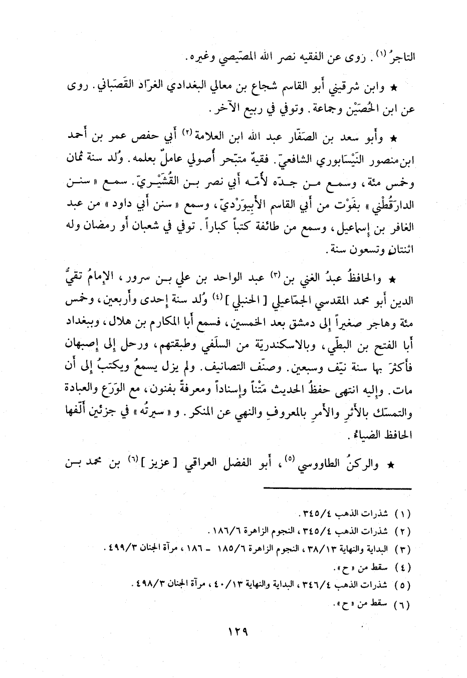 والحافظ عبد الغني بن عبد الواحد بن علي بن سرور الإمام تقي الدين أبو محمد المقدسي الجماعيلي الحنبلي ولد سنة إحدى وأربعين وخمس مائة وهاجر صغيرًا إلى دمشق بعد الخمسين فسمع أبا المكارم بن هلال وببغداد أبا الفتح بن البطي وبالإسكندرية من السلفي وطبقتهم ورحل إلى إصبهان فأكثر بها سنة نيف وسبعين.