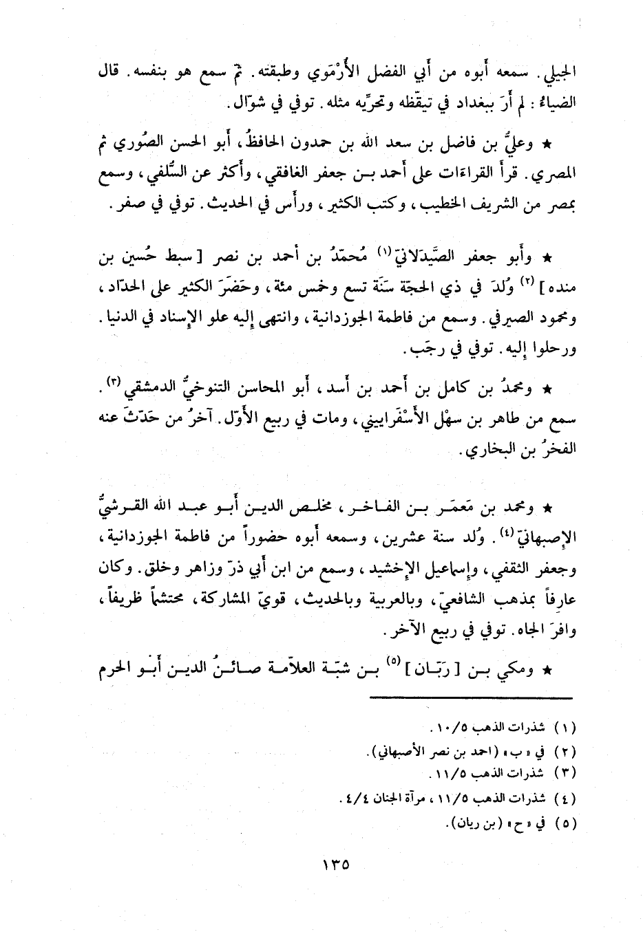 وأبو جعفر الصيدلاني محمد بن أحمد بن نصر سبط حسين بن منده ولد في ذي الحجة سنة تسع وخمس مائة وحضر الكثير على الحداد ومحمود الصيرفي.