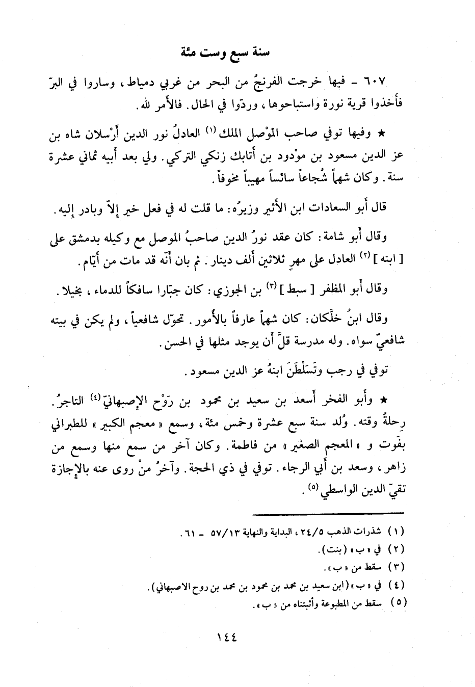 وفيها توفي صاحب الموصل الملك العادل نور الدين أرسلان شاه بن عز الدين مسعود بن مودود بن أتابك زنكي التركي.