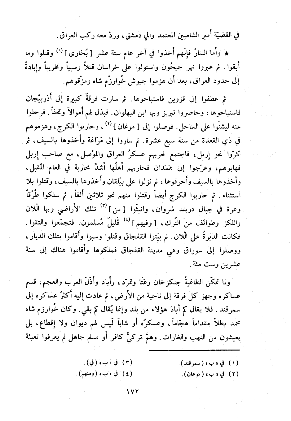 ثم ساروا إلى مراغة وأخذوها بالسيف ثم كروا نحو إربل فاجتمع لحربهم عسكر العراق والموصل مع صاحب إربل فهابوهم وعرجوا إلى همذان فحاربهم أهلها أشد محاربة في العام المقبل وأخذوها بالسيف وأحرقوها ثم نزلوا على بيلقان وأخذوها بالسيف وقتلوا بلا استثناء.