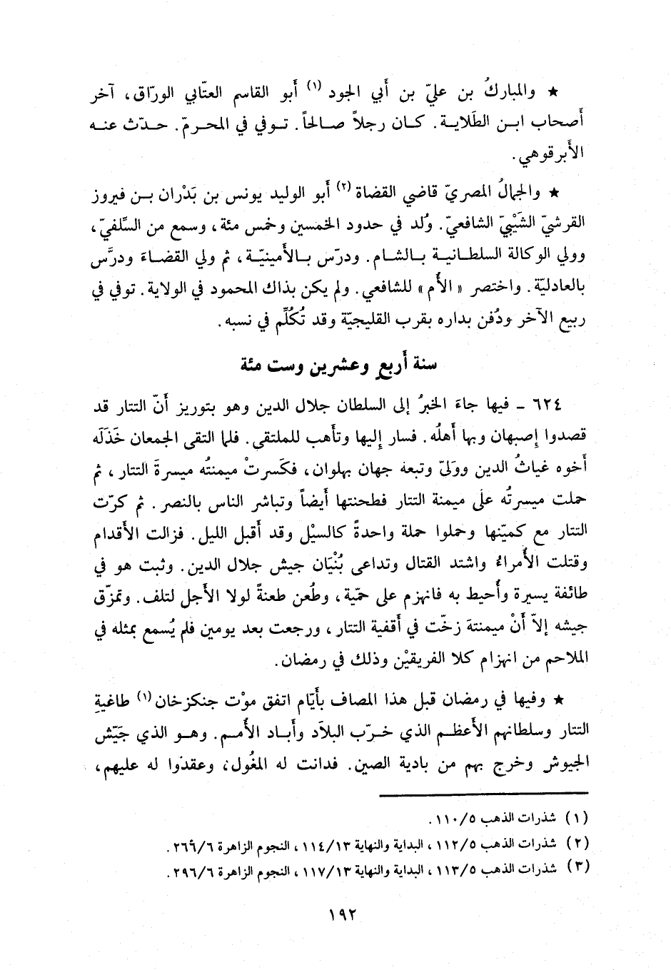 فيها جاء الخبر إلى السلطان جلال الدين وهو بتوريز أن التتار قد قصدوا إصبهان وبها أهله.