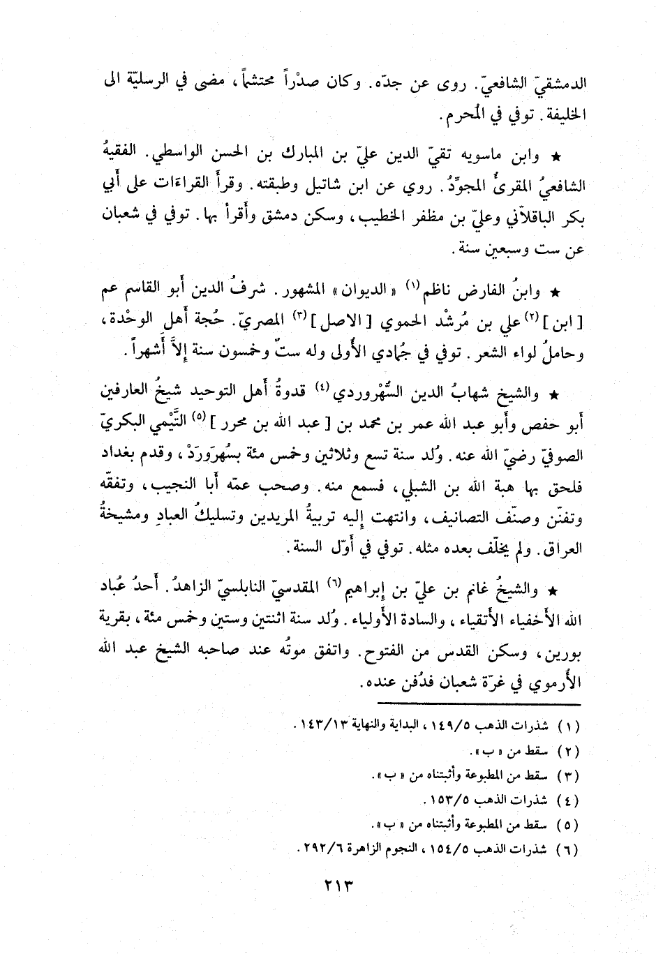 والشيخ شهاب الدين السهروردي قدوة أهل التوحيد شيخ العارفين أبو حفص وأبو عبد الله عمر بن محمد بن عبد الله بن محرر التيمي البكري الصوفي رضي الله عنه.