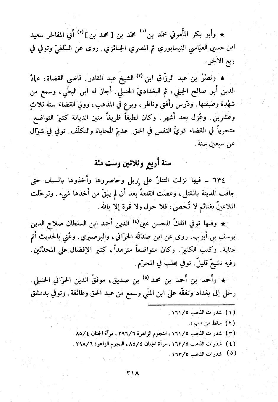 فيها نزلت التتار على إربل وحاصروها وأخذوها بالسيف حتى جافت المدينة بالقتلى وعصت القلعة بعد أن لم يبق من أخذها شيء.