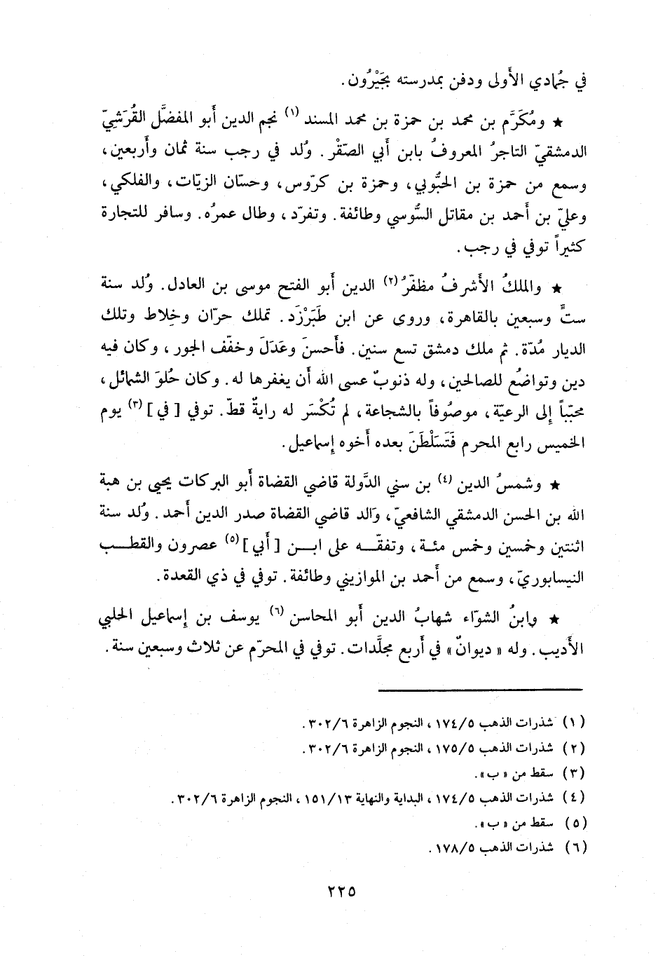 وشمس الدين بن سني الدولة قاضي القضاة أبو البركات يحيى بن هبة الله بن الحسن الدمشقي الشافعي والد قاضي القضاة صدر الدين أحمد.