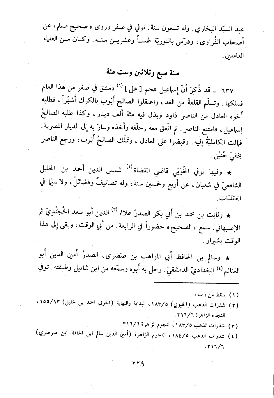 فيها ذكر أن إسماعيل هجم على دمشق في صفر من هذا العام فملكها.