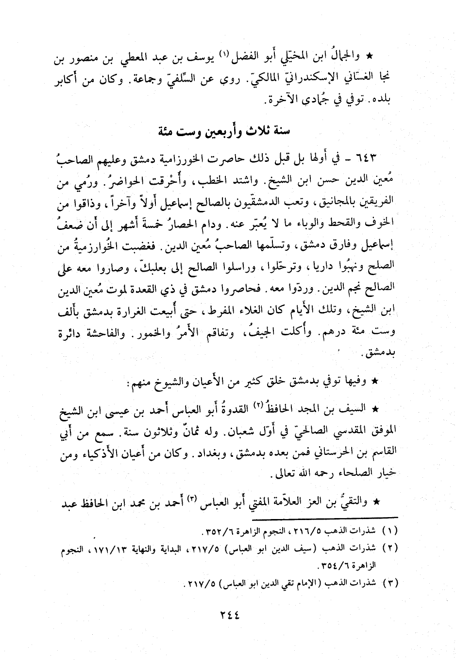 في أولها بل قبل ذلك حاصرت الخوارزمية دمشق وعليهم الصاحب معين الدين حسن ابن الشيخ.