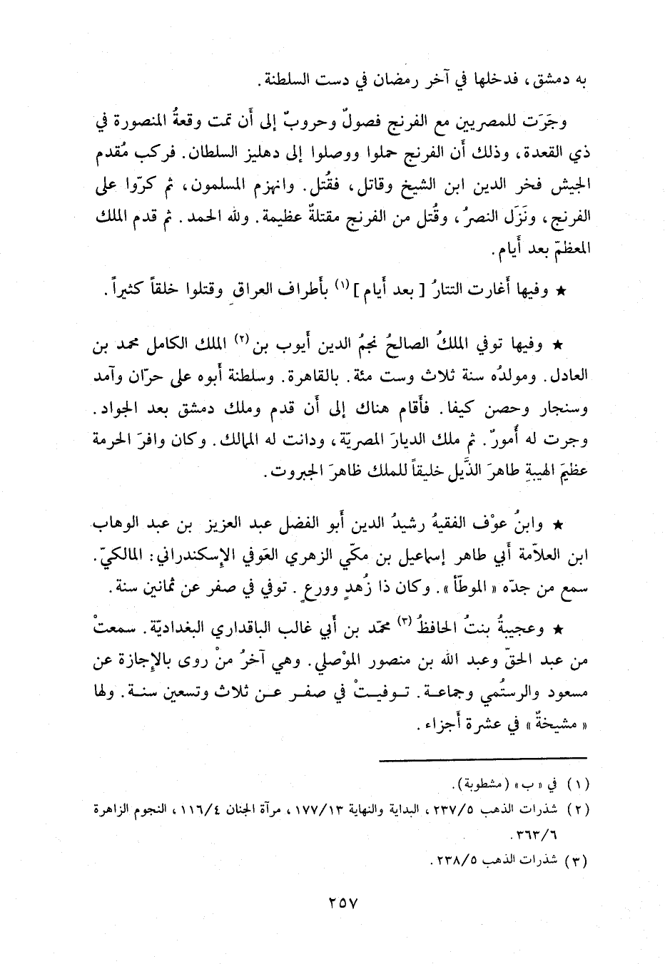 وفيها توفي الملك الصالح نجم الدين أيوب بن الملك الكامل محمد بن العادل.
