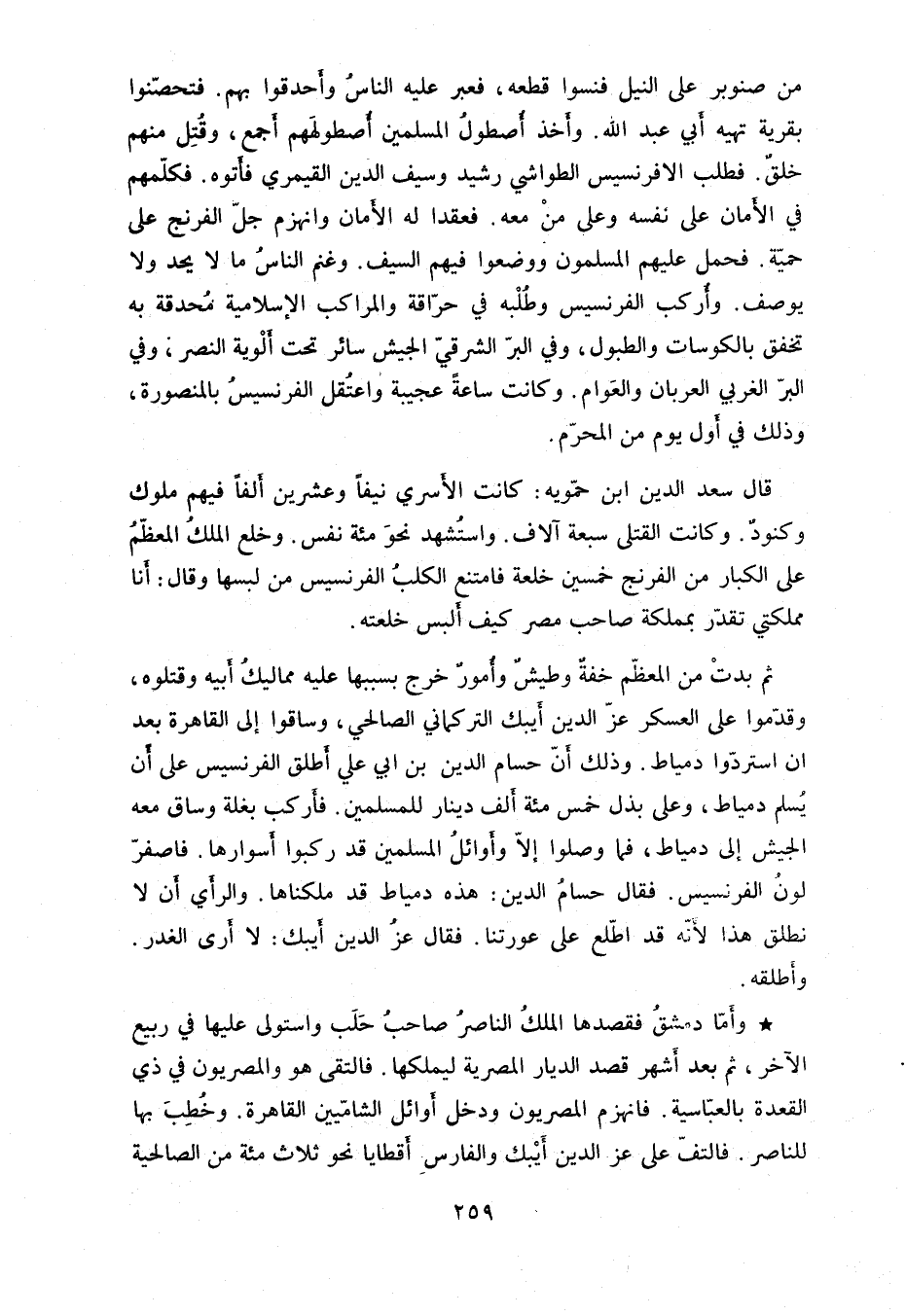 وذلك أن حسام الدين بن أبي علي أطلق الفرنسيس على أن يسلم دمياط وعلى بذل خمس مائة ألف دينار للمسلمين.