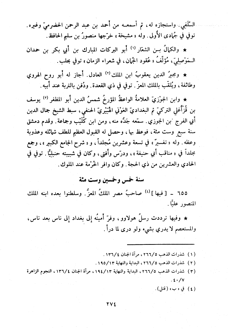 وفيها ترددت رسل هولاوو وفر أمينه إلى بغداد إلى ناس بعد ناس والمستعصم لايدري بشيء ولو درى لما درأ.