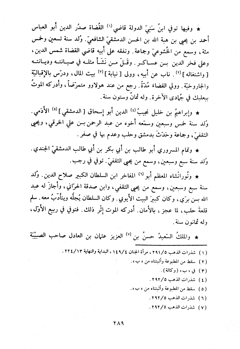 وفيها توفي ابن سني الدولة قاضي القضاة صدر الدين أبو العباس أحمد بن يحيى بن هبة الله بن