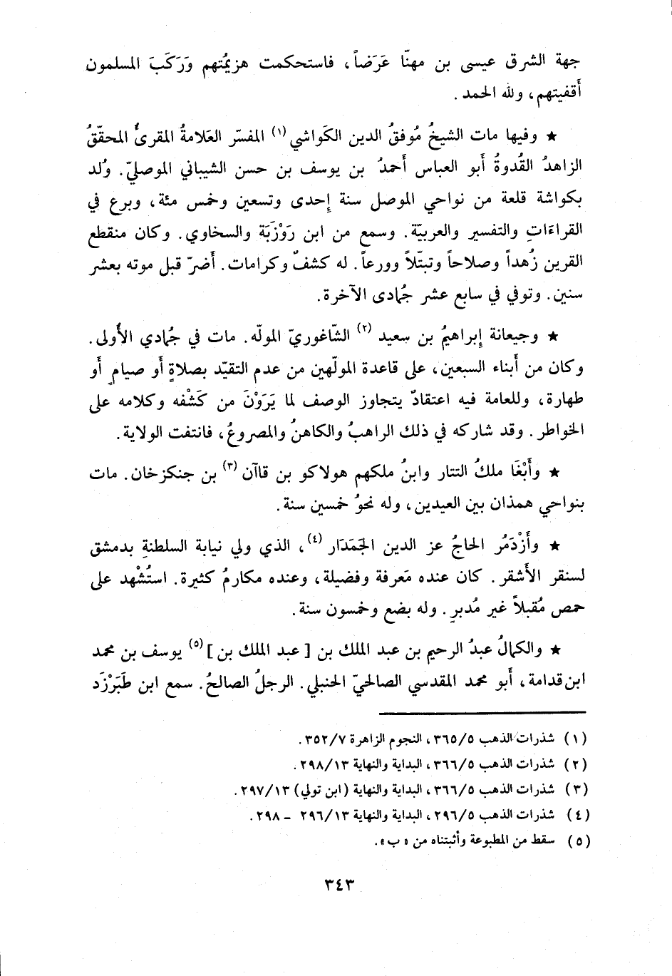 وفيها مات الشيخ موفق الدين الكواشي المفسر العلامة المقرئ المحقق الزاهد القدوة أبو العباس أحمد بن يوسف بن حسن الشيباني الموصلي.