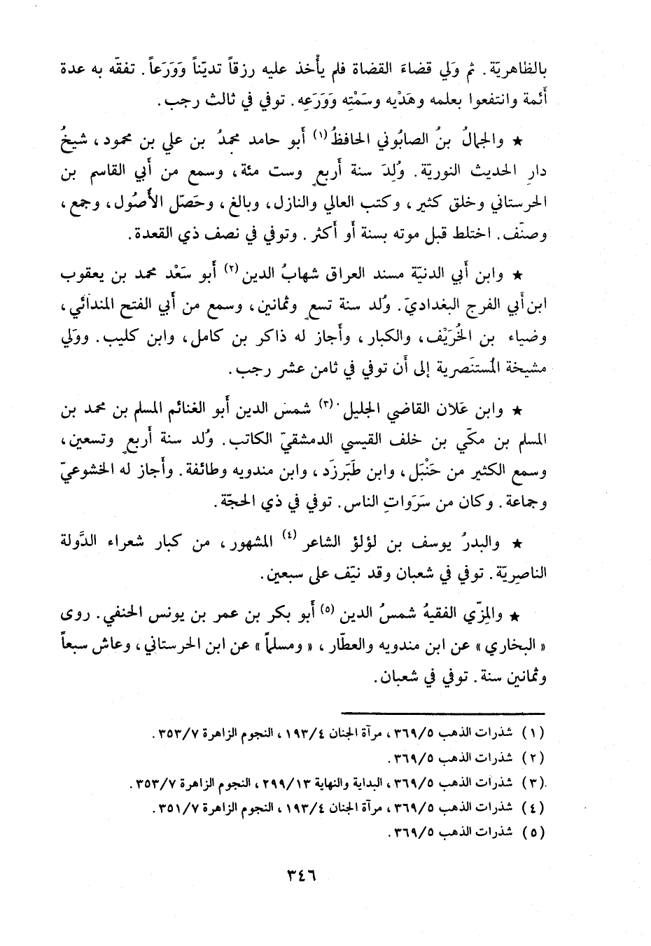 والجمال بن الصابوني الحافظ أبو حامد محمد بن علي بن محمود شيخ دار الحديث النورية.