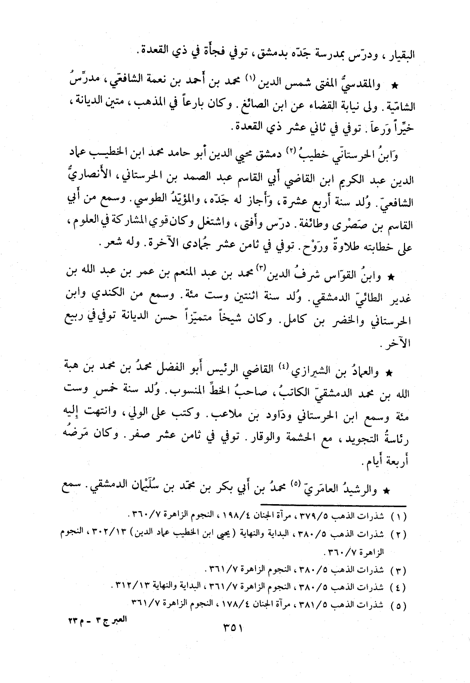 والعماد ابن الشيرازي القاضي الرئيس أبو الفضل محمد بن محمد بن هبة الله بن محمد الدمشقي الكاتب صاحب الخط المنسوب.