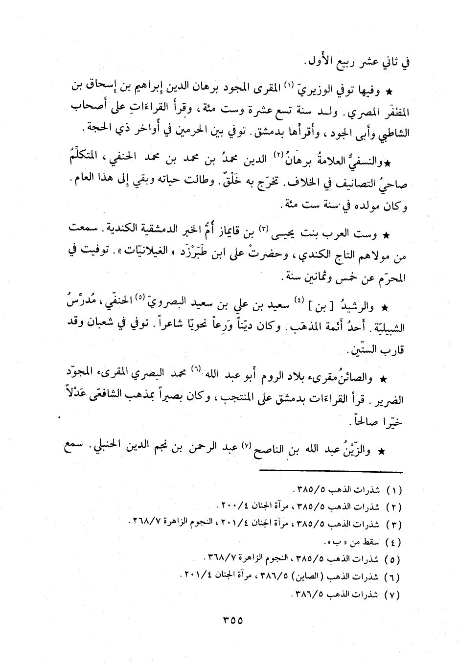 والنسفي العلامة برهان الدين محمد بن محمد بن محمد الحنفي المتكلم صاحب التصانيف في الخلاف.