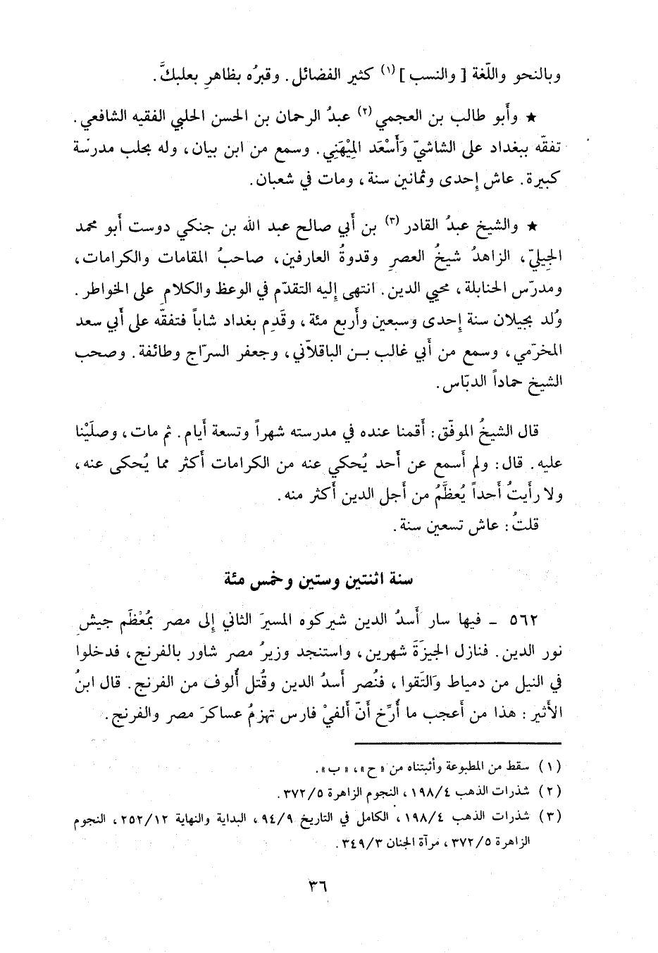 والشيخ عبد القادر بن أبي صالح عبد الله بن جنكي دوست أبومحمد الجيلي الزاهد شيخ العصر وقدوة العارفين صاحب المقامات والكرامات ومدرس الحنابلة محيي الدين.