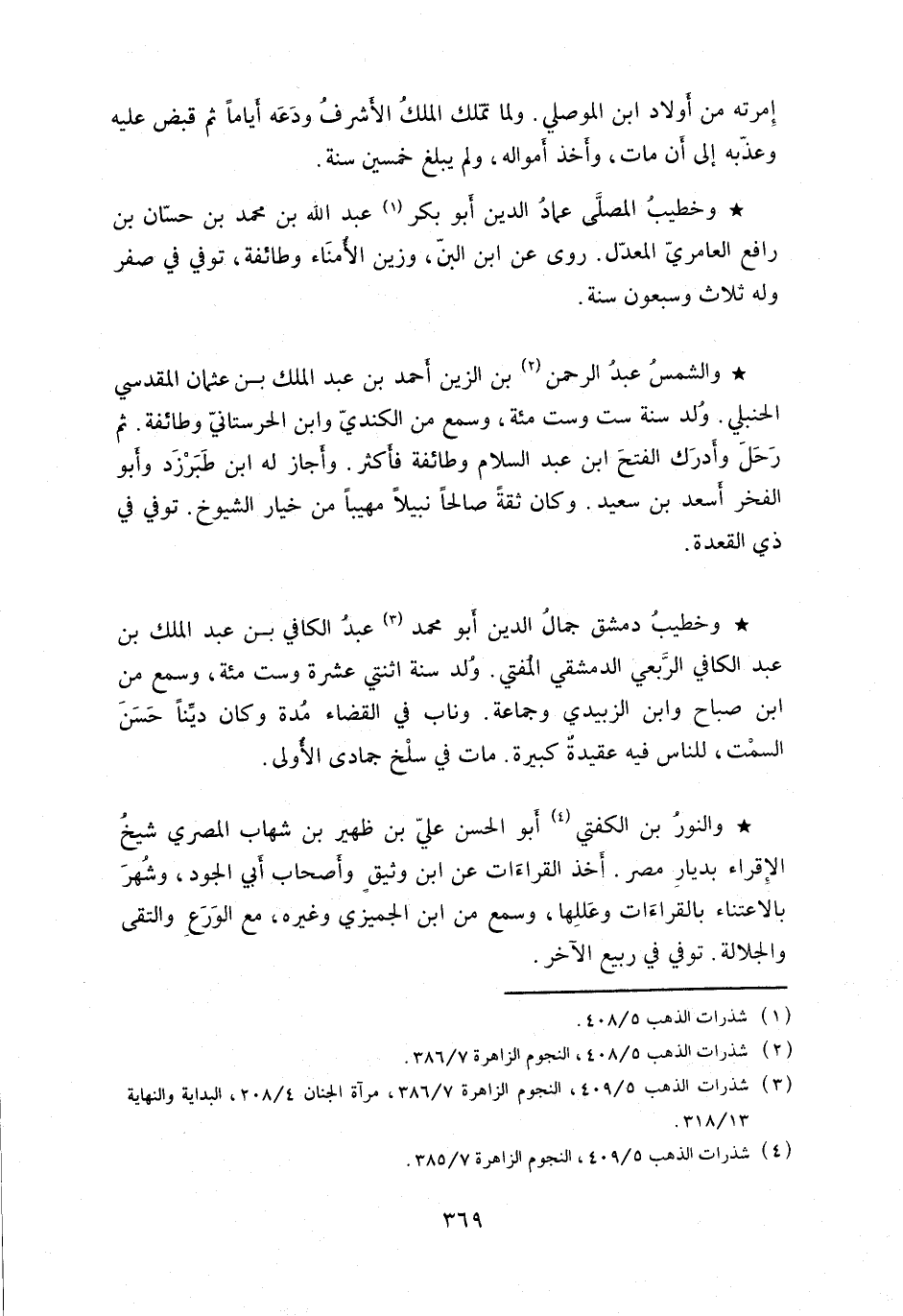 والنور بن الكفتي أبو الحسن علي بن ظهير بن شهاب المصري شيخ الإقراء بديار مصر.